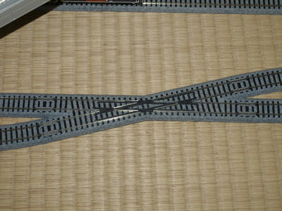 交差線路。立体交差無しで1本にするには此れを二箇所使っているのです。
