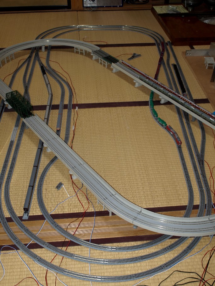 変形オーバルコースを3周。其れを1本のレールにしています。