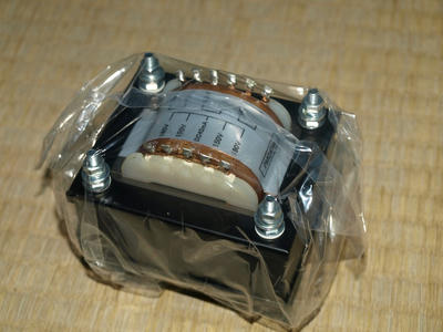 自作パワーパック用の電源トランス。巧く狙った値のトランスが市販されていましたので助かりました。