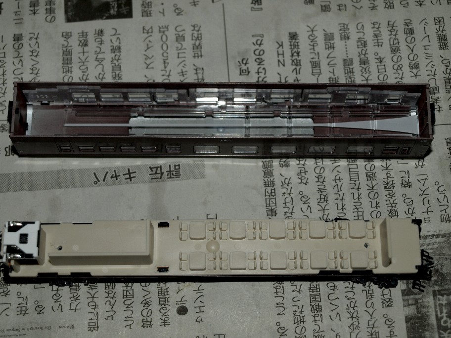 61系との決定的な違い。導光板を屋根側にセットします(61系は床側)。