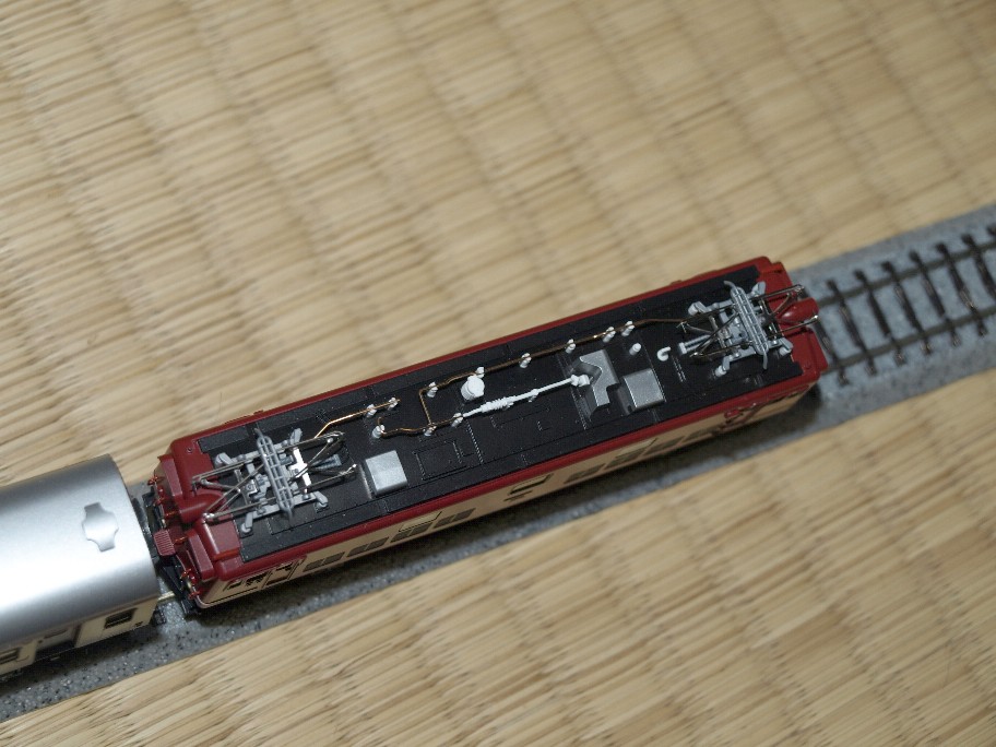 屋根上の表情。僕の持っている電気機関車の屋根上配線は樹脂でのモールド(此れでも驚いたんですけど)。