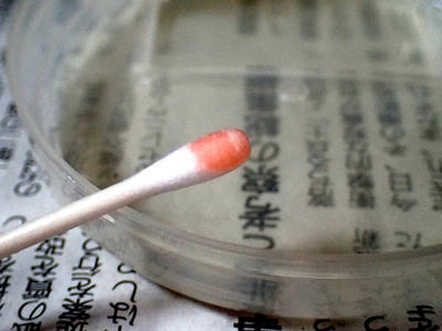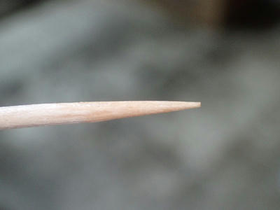 続いて爪楊枝の先端にもクラモリンを滴下。