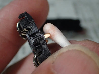 その綿棒でライトユニットの端子をゴシゴシ。赤の次には青をゴシゴシ。