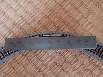 先輪もギリギリで脱線していません。何周も回らせましたが不安定な挙動はゼロ(また一両増えた、ニコッ)。