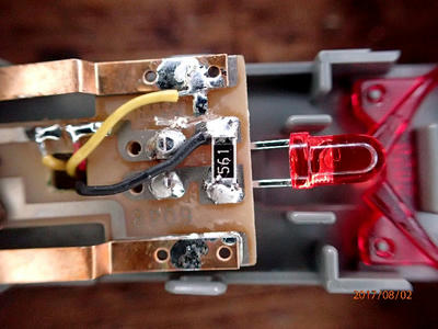 普通ならLEDにシリーズに入っている抵抗値を大きくすれば済むんですけど、Nゲージの場合列車の速度で加わる電圧が変わる。