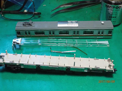 後方車両からも集電が出来る様に改造をしましたので、ボディーを外すの迄は出来ます。