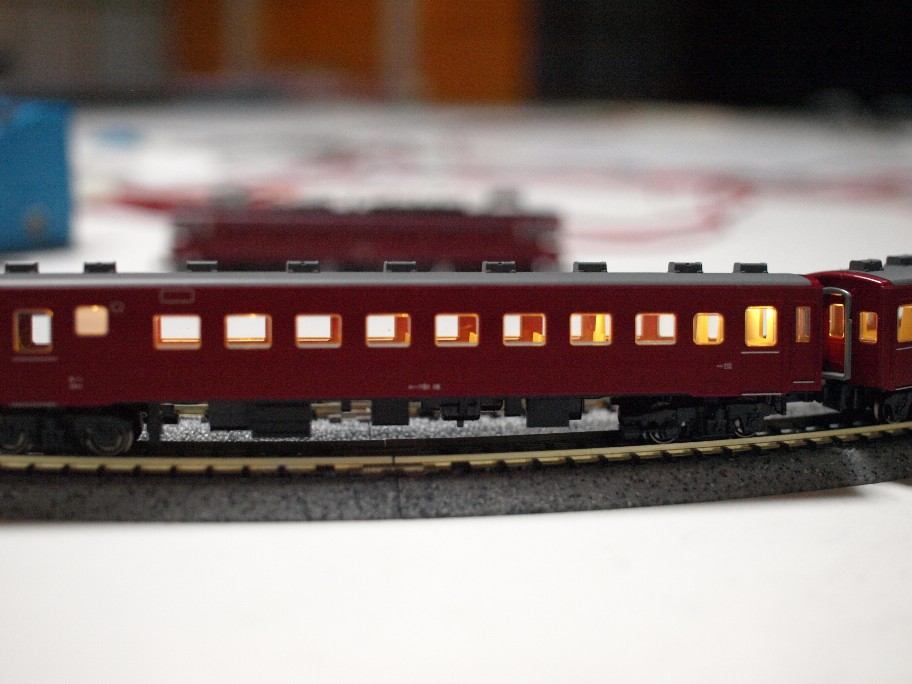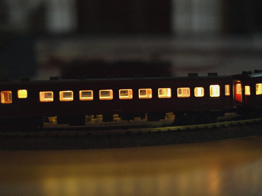 殆どの客車に室内灯を入れて、夜汽車を楽しんでいます。