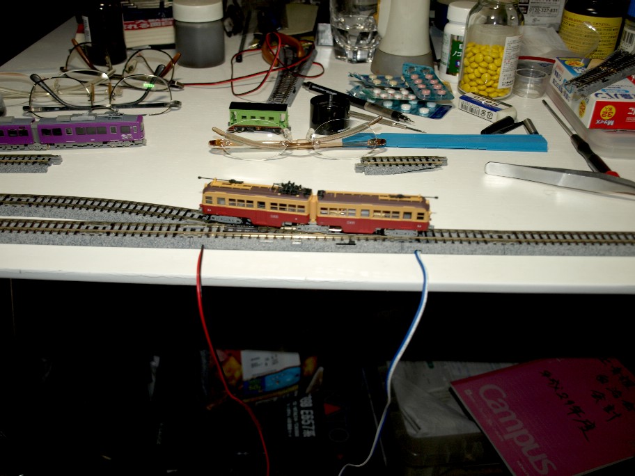 食事用のテーブルの上にテストコース(と言っても往復するだけのコースです)。