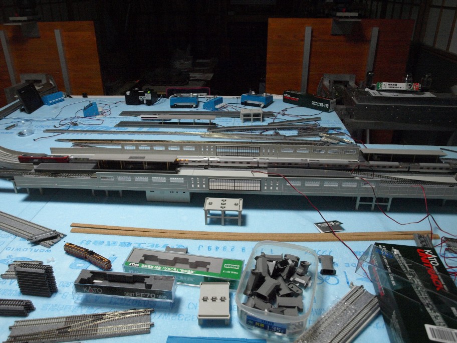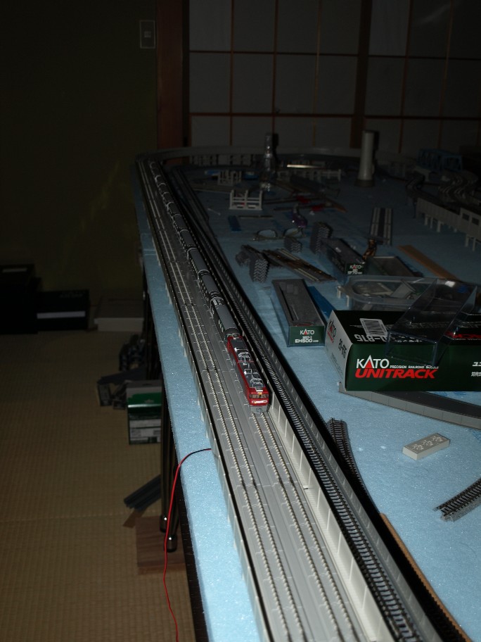 実は近々全ての線路の引き直しに成ります。スタイロフォームの上にもう一枚有る物を敷く予定。