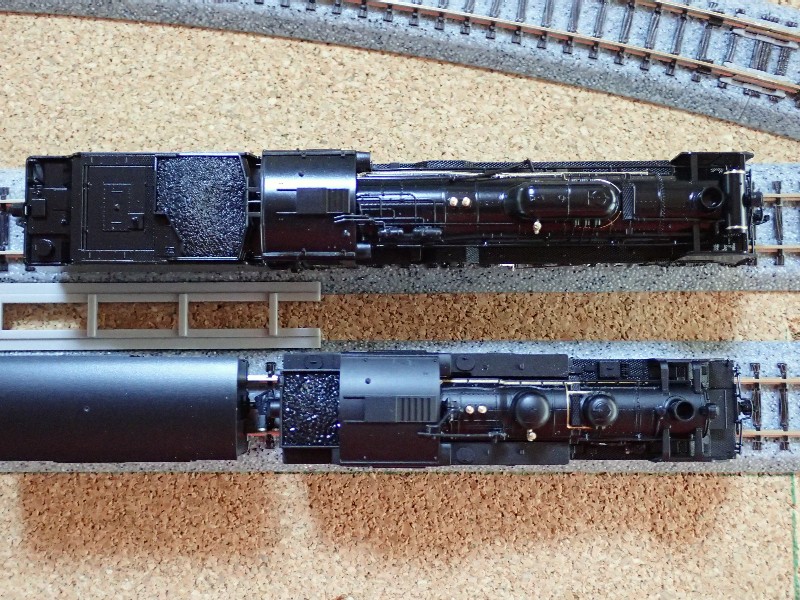 C11は貨車を引いた状態です。テンダー(炭水車)を除いてもC11の方が小さいのです。