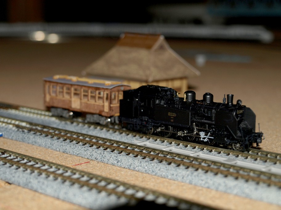 C11をレールに乗せたけど、引かせる列車が思い浮かばない(現在のお祭り列車じゃ・・)。