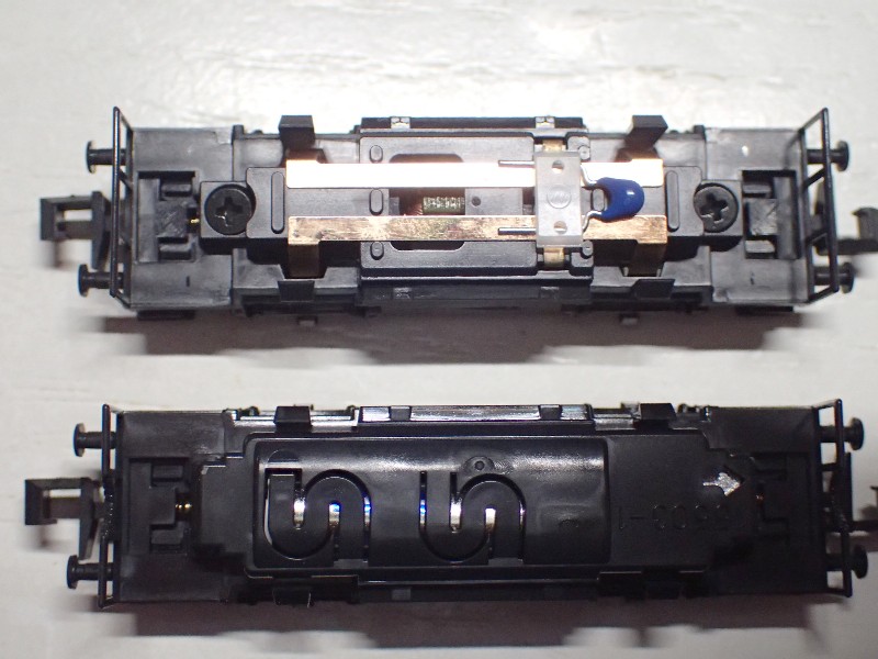 新旧動力ユニット。2本の導電板が見えるのが旧型です。
