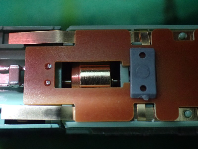 写真の上下に有る真鍮板。レールからの電気をモーターへ伝える大事なパーツ。