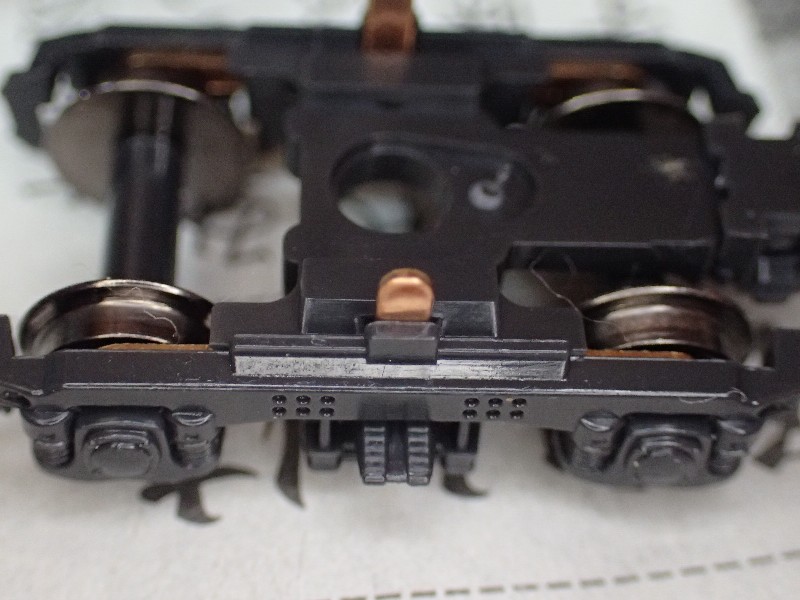 この部分の接点の接触圧力が低過ぎるんですね。高いと台車の回転が重くなって脱線の原因にも成りますので難しい所です。