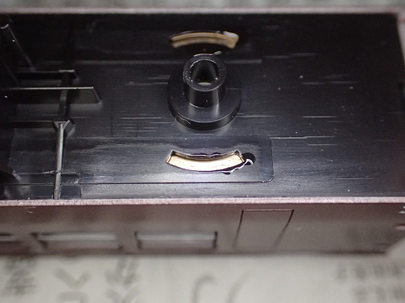 車体側の接点。円弧を描いていますので判りますよね。台車の接点はカーブを通過する度に左右に振れて円弧を描きます。
