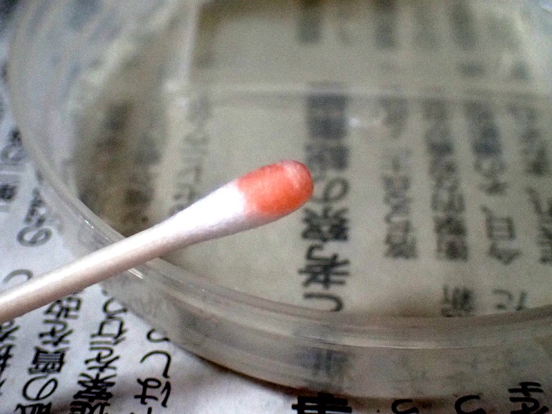 綿棒にタップリとクラモリンを浸透。