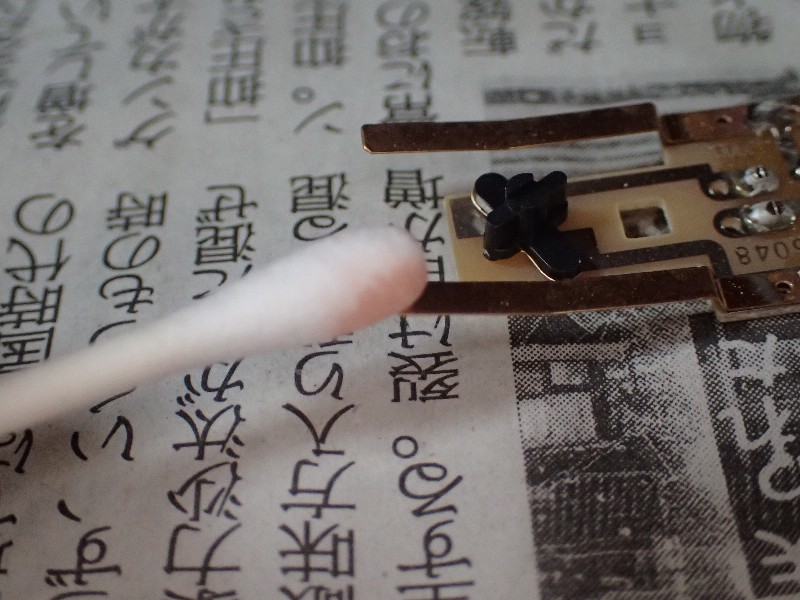 その綿棒でライトユニットの端子をゴシゴシ。赤の次には青をゴシゴシ。
