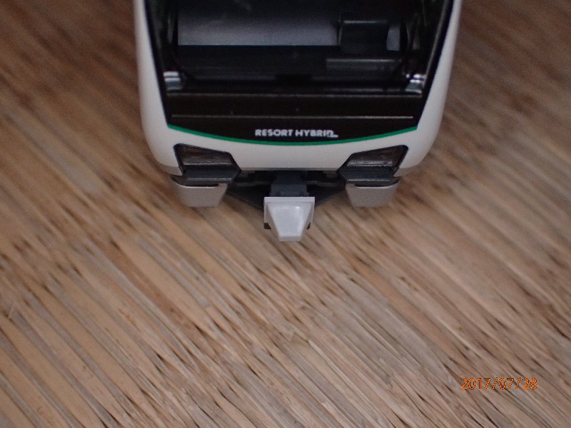 前後のカプラーはカバー付きのダミー。軽く引っ張ったらポロって外れた(汗)。此処へ接続可能のカプラーを取り付けるのは可也の改造をしないと無理な様です。