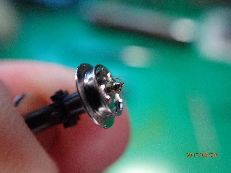 車輪のシャフト先端もこの状態。此処は電流を流す大事な部分です。汚れていては集電不良が起きて当たり前です。