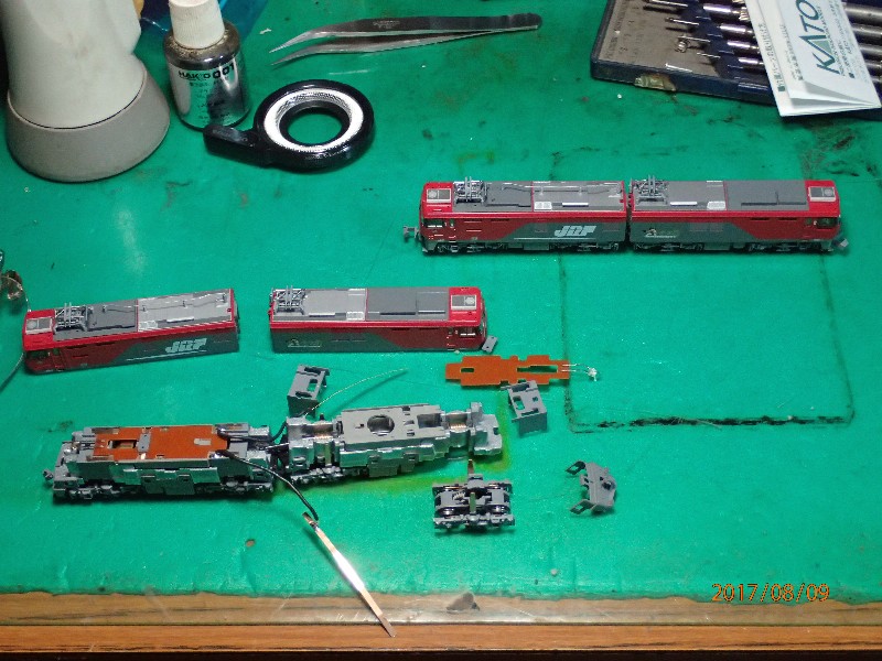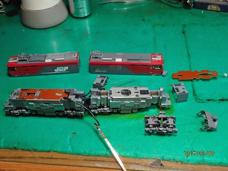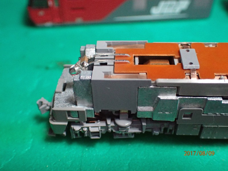 後方車両からも集電が出来る様に改造をしましたので、ボディーを外すの迄は出来ます。