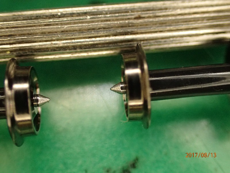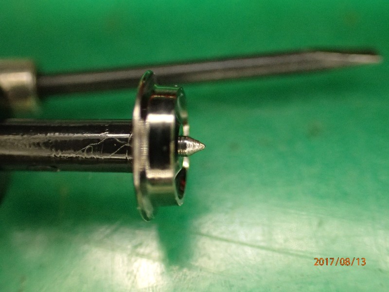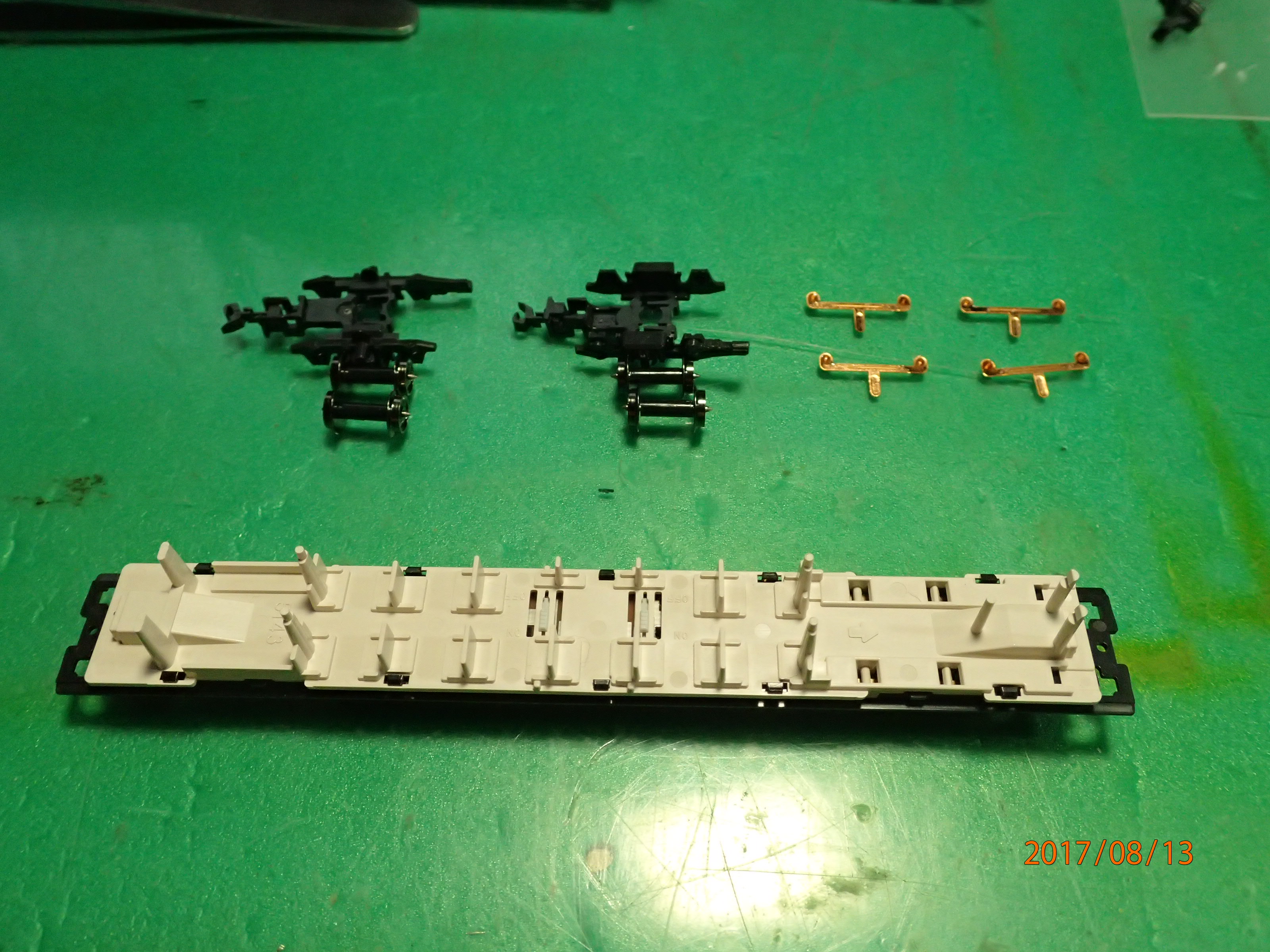 序でに室内灯を取り付け。集電不良は台車が原因、って略判ったので室内灯付属の集電金具はへの字に曲げないでその侭挿入します。